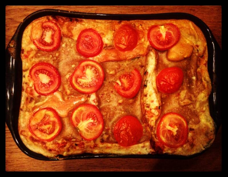 -stap 9: snijdt de tomaten in dunne plakken en verdeel over de lasagne