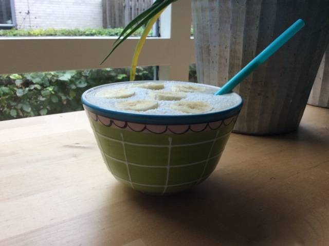 Ingredienten voor 1 hele volle bak Kokos smoothie (bij mij past het er niet allemaal in dus ik eet het in twee keer!!):